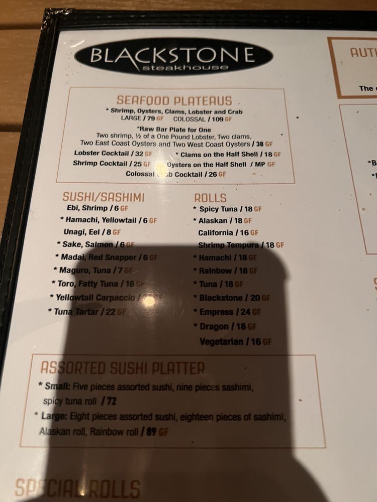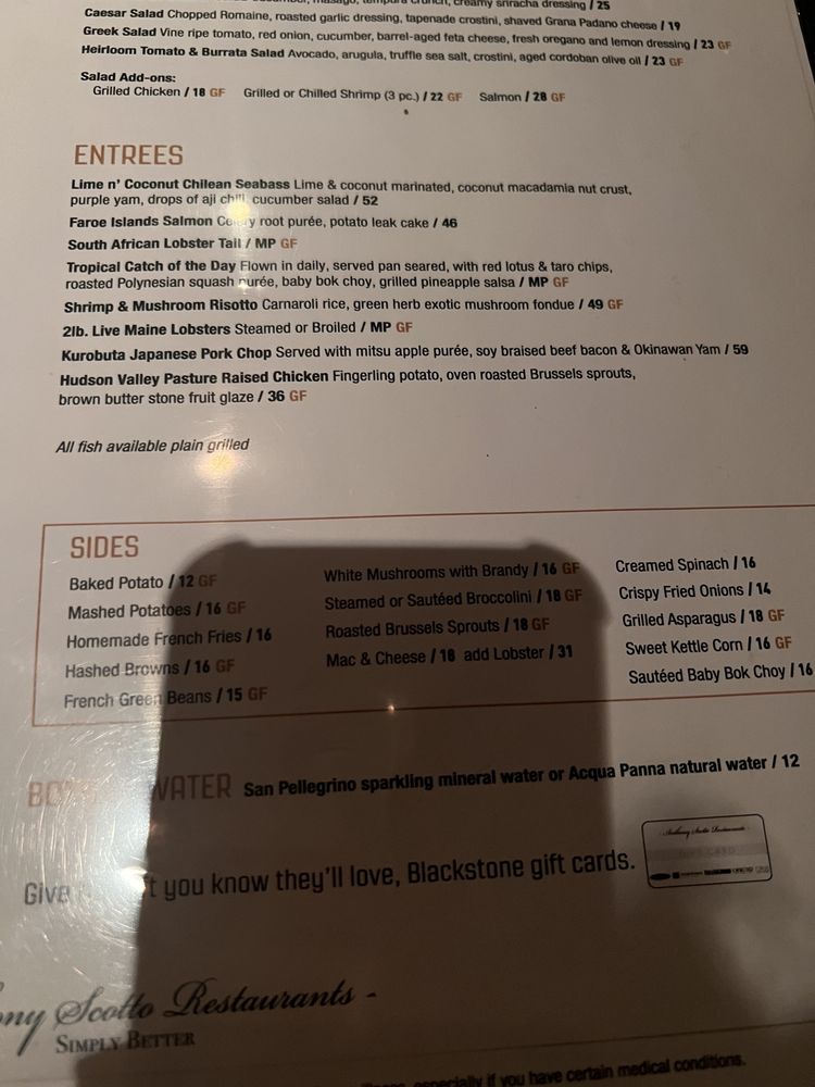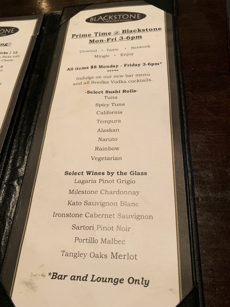 Blackstone Steakhouse Menu (2025 Update)